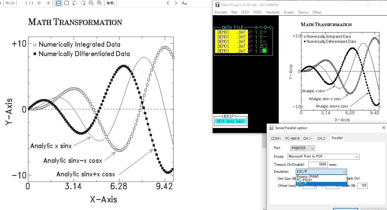 普通のプリンタでもエミュレーション機能でPC-PR201系やESC/P系のデータ印刷が可能です。PDFプリンタへの印刷もできます。